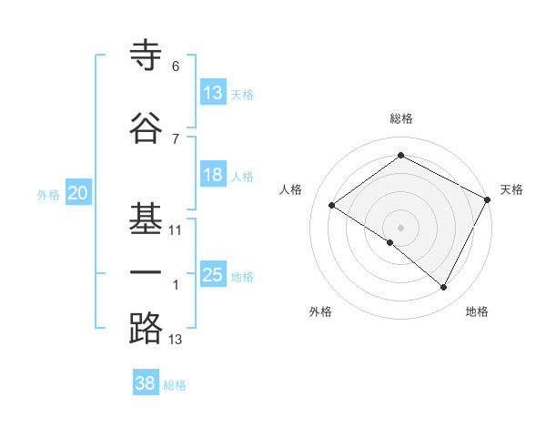 寺谷 基一路さんの総格は38画の4点!