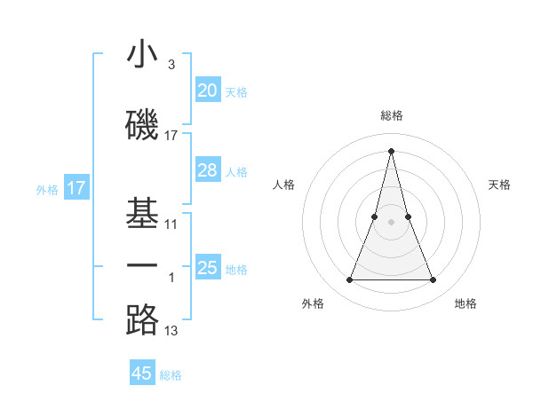 小磯 基一路さんの地格は25画の4点!