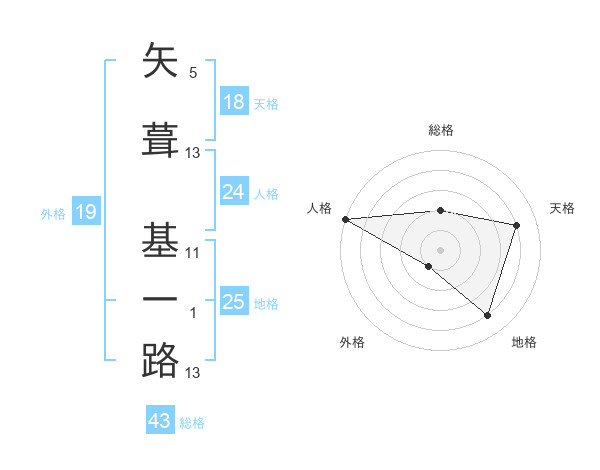 矢葺 基一路さんの地格は25画の4点!
