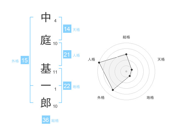 中庭 基一郎さんを姓名の画数から五運を鑑定