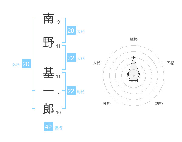 南野 基一郎さんを姓名の画数から五運を鑑定