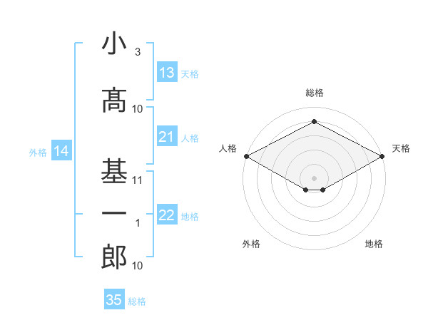 小髙 基一郎さんの総格は35画の4点!