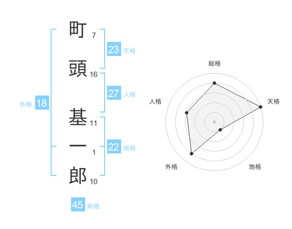 町頭 基一郎さんの総格は45画の4点!