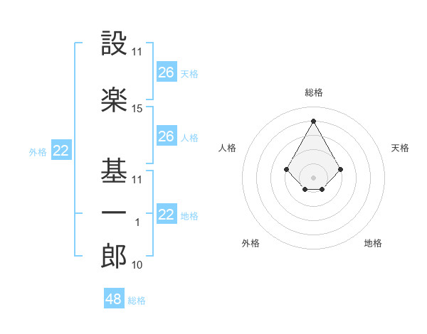 設楽 基一郎さんを姓名の画数から五運を鑑定