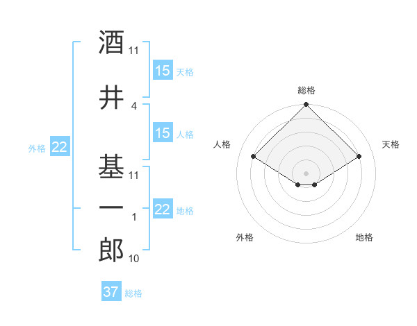 酒井 基一郎さんを姓名の画数から五運を鑑定