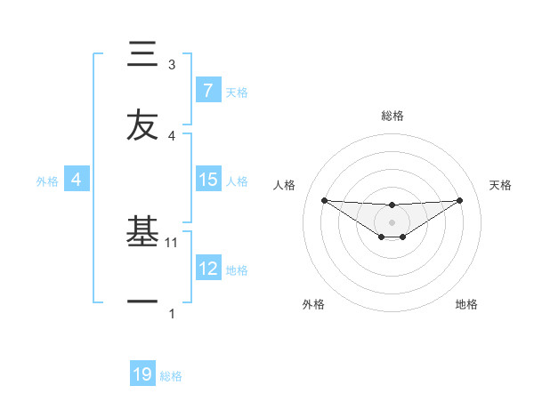 三友 基一さんの総格は19画の1点!