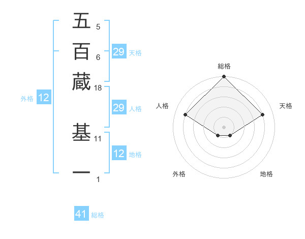 五百蔵 基一さんを姓名の画数から五運を鑑定