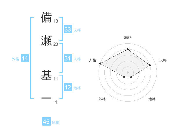 備瀬 基一さんの総格は45画の4点!