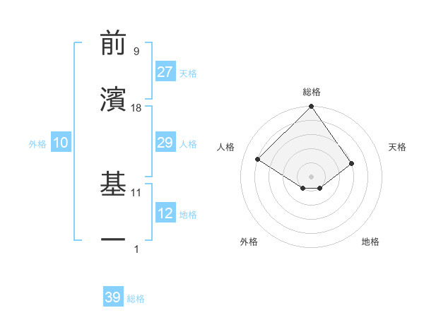 前濱 基一さんの総格は39画の5点!