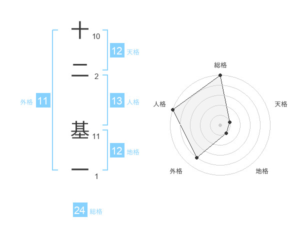十二 基一さんの総格は24画の5点!