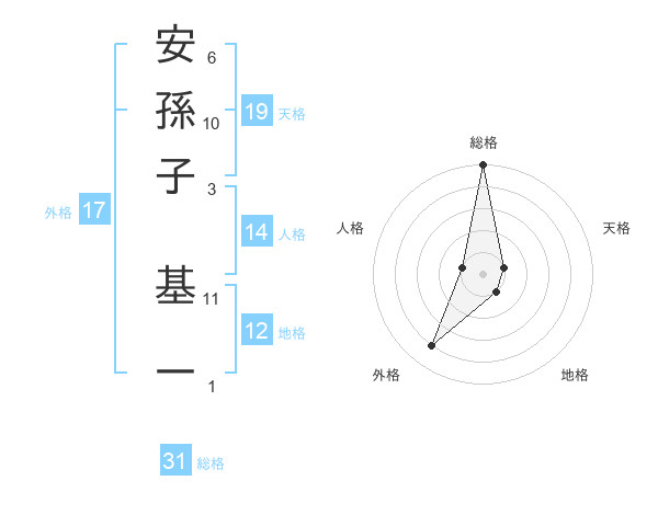 安孫子 基一さんの総格は31画の5点!