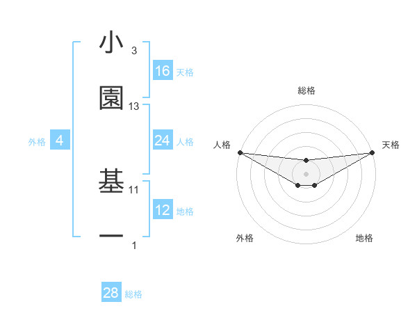 小園 基一さんの総格は28画の1点!