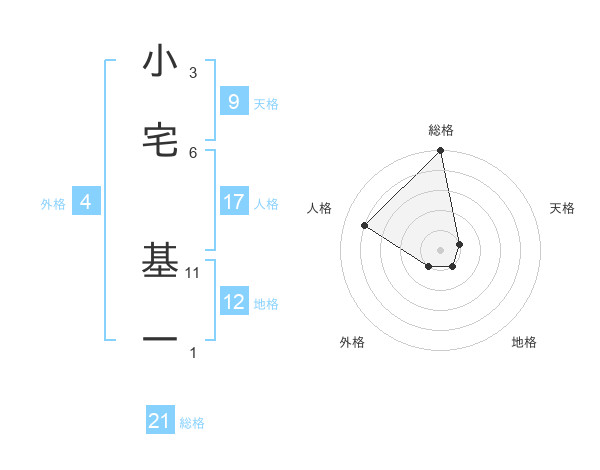小宅 基一さんの総格は21画の5点!