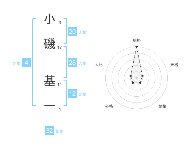 小磯 基一さんの総格は32画の5点!