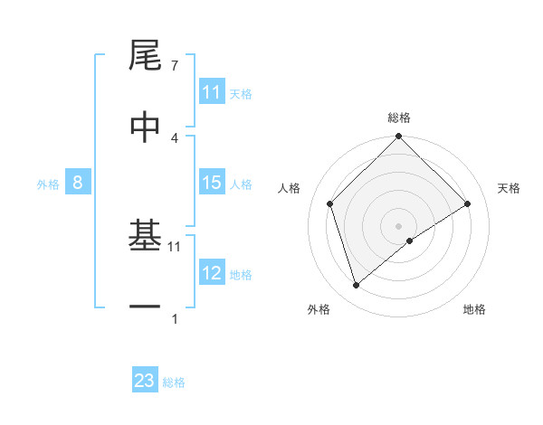 尾中 基一さんの総格は23画の5点
