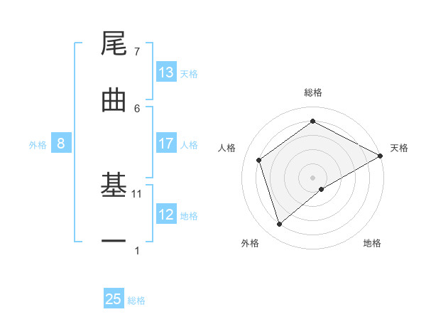 尾曲 基一さんを姓名の画数から五運を鑑定