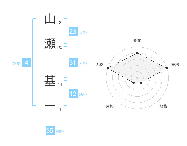山瀬 基一さんを姓名の画数から五運を鑑定