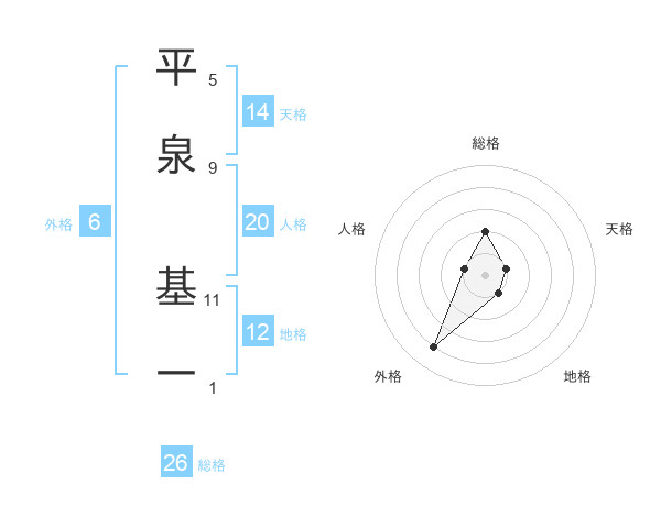 平泉 基一さんの総格は26画の2点!
