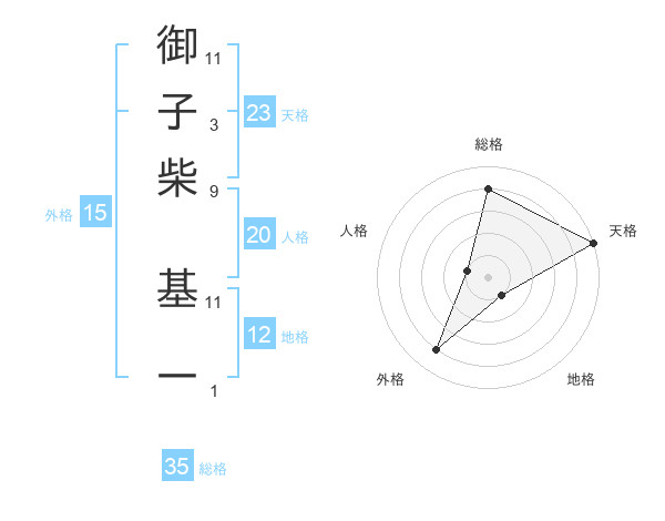 御子柴 基一さんの天格は23画の5点!