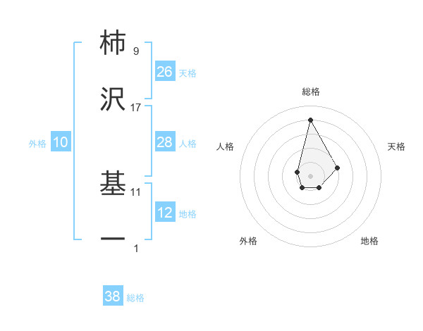 柿沢 基一さんの総格は38画の4点!