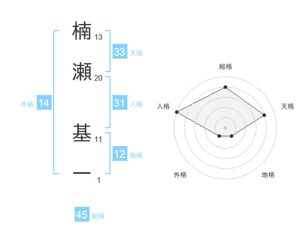 楠瀬 基一さんを姓名の画数から五運を鑑定