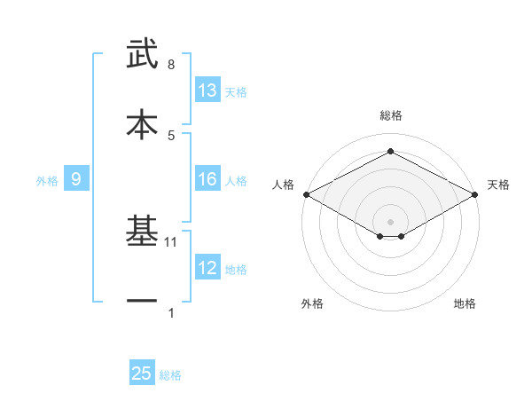 武本 基一さんの総格は25画の4点!