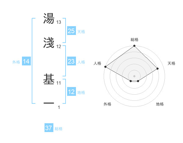 湯淺 基一さんの総格は37画の5点!