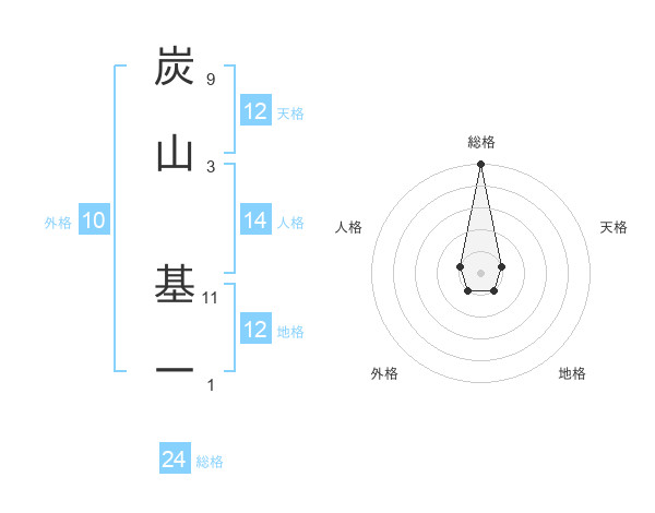 炭山 基一さんの総格は24画の5点!