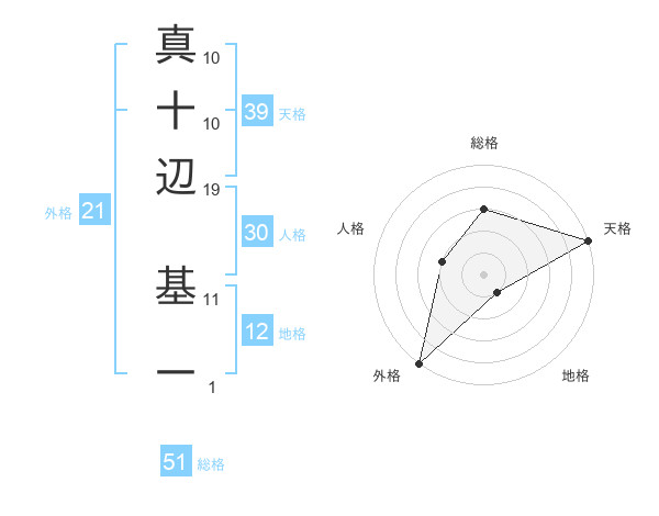 真十辺 基一さんを姓名の画数から五運を鑑定