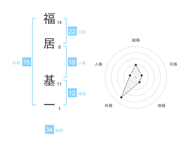 福居 基一さんを姓名の画数から五運を鑑定