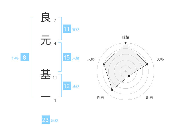 良元 基一さんの総格は23画の5点!