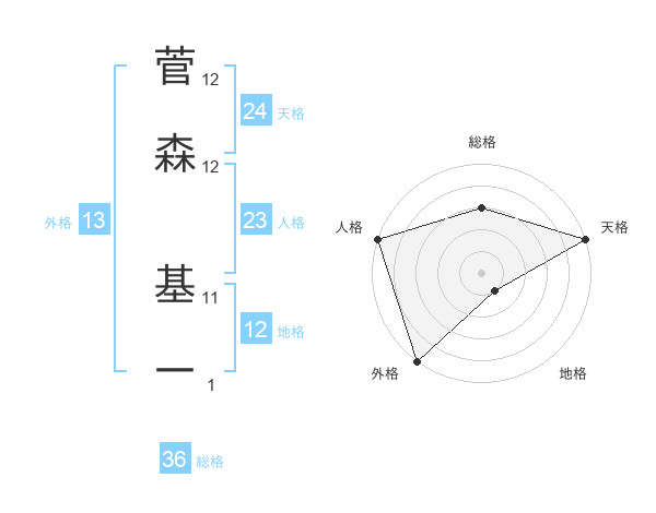 菅森 基一さんの地格は12画の1点!