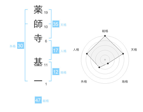 薬師寺 基一さんの総格は47画の5点!