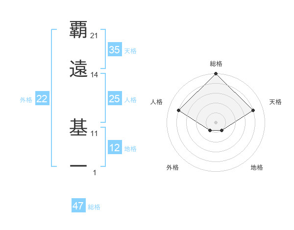 覇遠 基一さんを姓名の画数から五運を鑑定