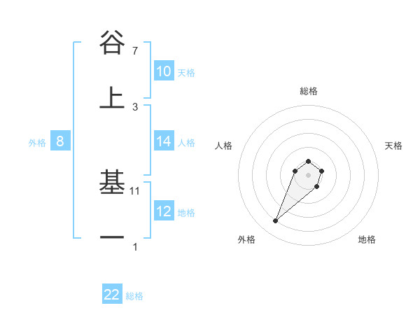 谷上 基一さんの総格は22画の1点!
