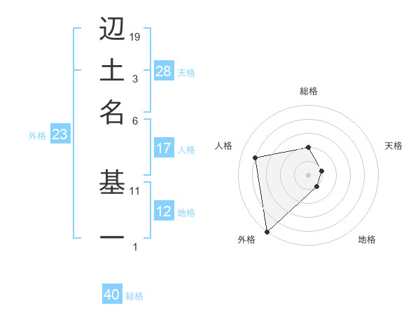 辺土名 基一さんの外格は23画の5点!