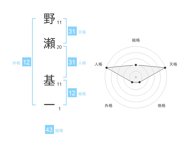 野瀬 基一さんの人格は31画の5点!