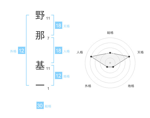 野那 基一さんの天格は18画の4点!