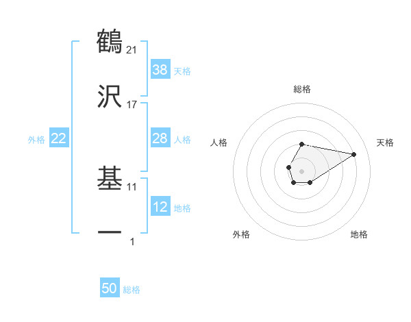 鶴沢 基一さんを姓名の画数から五運を鑑定