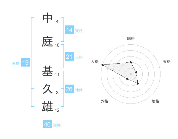 中庭 基久雄さんの総格は40画の2点!
