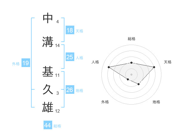 中溝 基久雄さんを姓名の画数から五運を鑑定