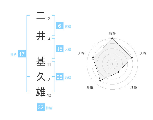 二井 基久雄さんの総格は32画の5点!