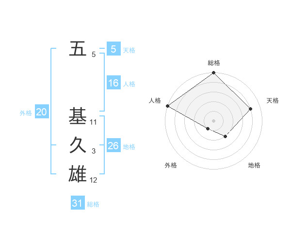 五 基久雄さんの総格は31画の5点!