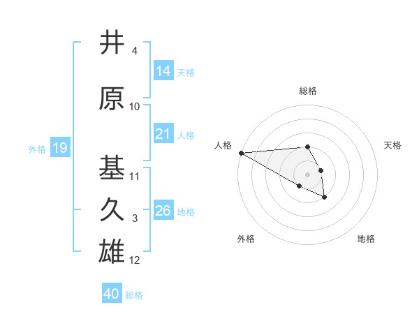 井原 基久雄さんを姓名の画数から五運を鑑定