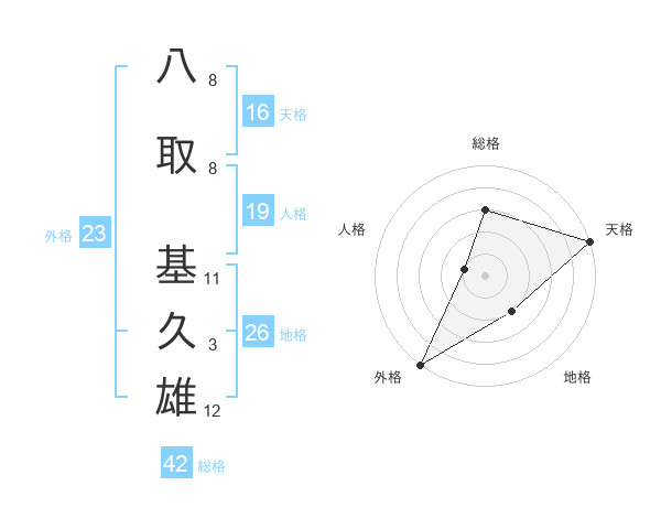 八取 基久雄さんを姓名の画数から五運を鑑定