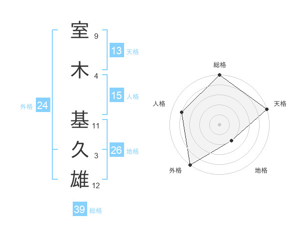 室木 基久雄さんの総格は39画の5点!