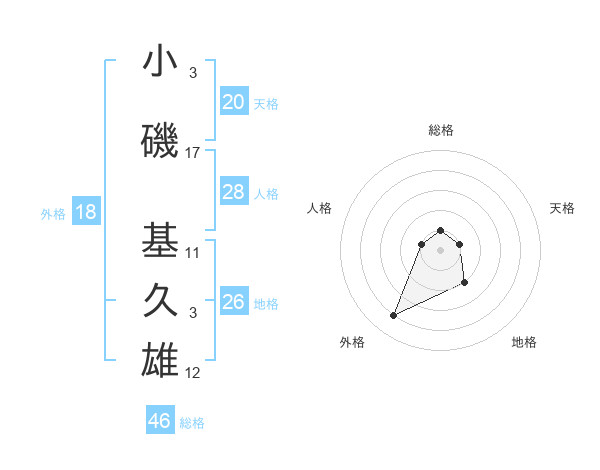 小磯 基久雄さんの地格は26画の2点!