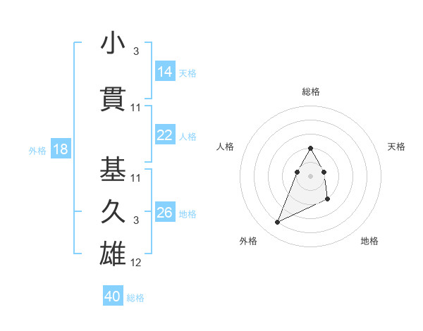 小貫 基久雄さんを姓名の画数から五運を鑑定