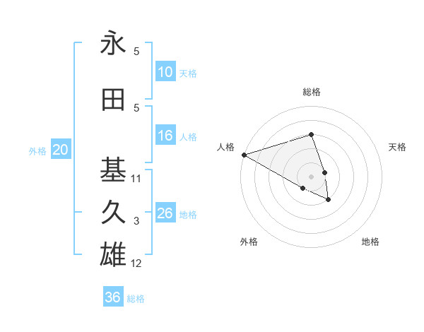 永田 基久雄さんの総格は36画の3点!