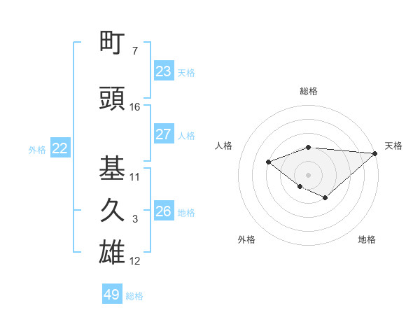 町頭 基久雄さんを姓名の画数から五運を鑑定